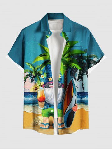 Plus Size Christmas Santa Claus Coconut Tree Beach Print Hawaii Button Pocket Shirt For Men - Dark Turquoise - 4xl