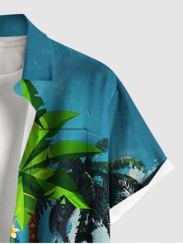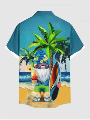 Plus Size Christmas Santa Claus Coconut Tree Beach Print Hawaii Button Pocket Shirt For Men - Dark Turquoise - 5xl