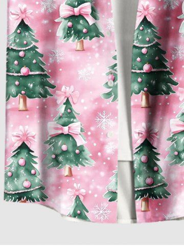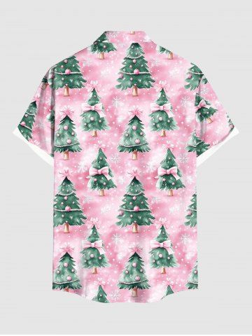 Plus Size Christmas Tree Ball Bowknot Snowflake Print Buttons Pocket Shirt For Men - Light Pink - 5xl
