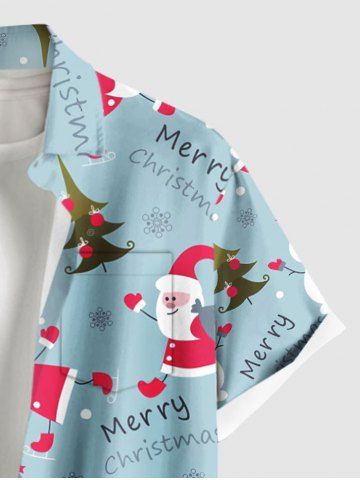 Plus Size Christmas Tree Santa Claus Snowman Print Buttons Pocket Shirt For Men - Blue Gray - 2xl