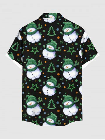 Plus Size Christmas Tree Snowman Star Dots Print Buttons Pocket Shirt For Men - Black - L