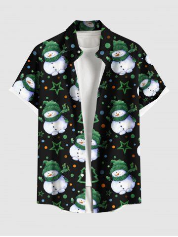 Plus Size Christmas Tree Snowman Star Dots Print Buttons Pocket Shirt For Men - Black - Xl