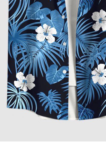 Plus Size Coconut Leaf Flower Print Hawaii Button Pocket Shirt For Men - Blue - Xl