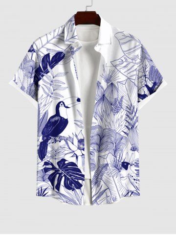 Short Sleeves Shirts > Plus Size Coconut Leaves Dragonfly Bird Floral Print Hawaii Button Pocket Shirt For Men