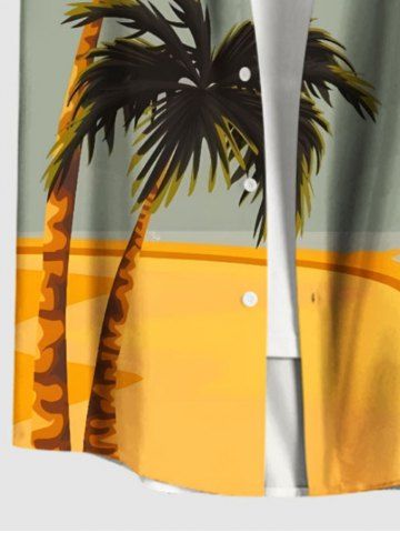 Short Sleeves Shirts > Plus Size Coconut Tree Beach Colorblock Print Buttons Pocket Hawaii Shirt For Men