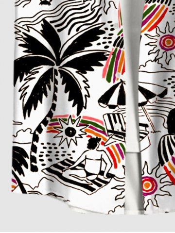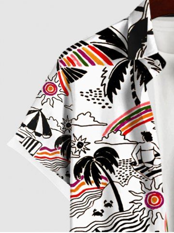 Short Sleeves Shirts > Plus Size Coconut Tree Beach Seascape Swallow Sun Print Hawaii Button Pocket Shirt For Men