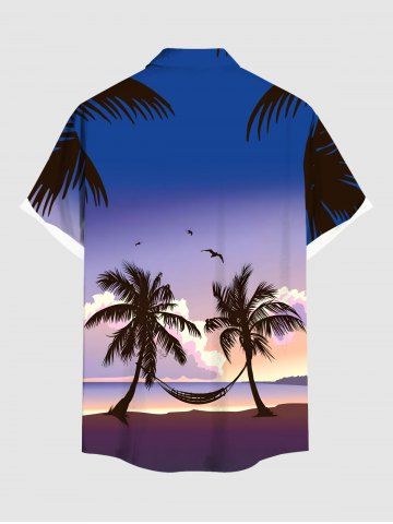 Plus Size Coconut Tree Bird Cloud Hammock Print Buttons Pocket Hawaii Shirt For Men - Blue - 3xl
