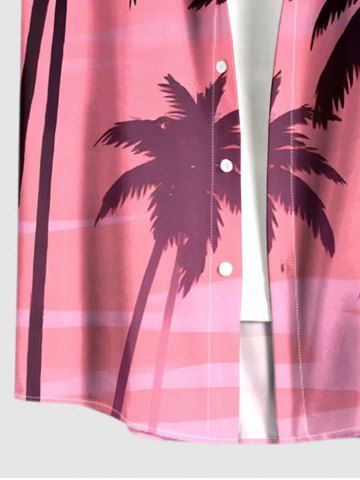Plus Size Coconut Tree Bird Moon Ombre Print Buttons Pocket Hawaii Shirt For Men - Purple - L