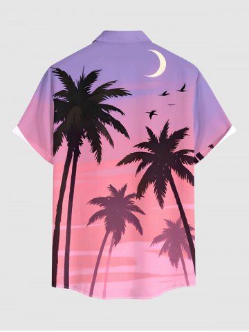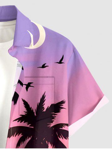Plus Size Coconut Tree Bird Moon Ombre Print Buttons Pocket Hawaii Shirt For Men - Purple - 5xl