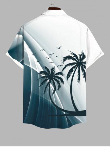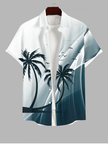 Plus Size Coconut Tree Bird Ombre Colorblock Light Beam 3D Print Buttons Pocket Hawaii Shirt For Men - White - S