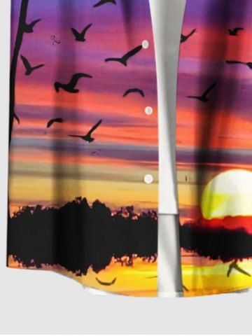 Plus Size Coconut Tree Bird Ombre Galaxy Sunset Print Hawaii Button Pocket Shirt For Men - Purple - 6xl