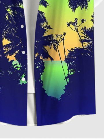 Plus Size Coconut Tree Bird Ombre Print Buttons Pocket Hawaii Shirt For Men - Blue - Xl