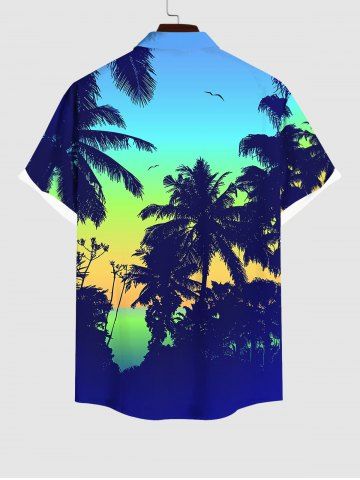 Short Sleeves Shirts > Plus Size Coconut Tree Bird Ombre Print Buttons Pocket Hawaii Shirt For Men