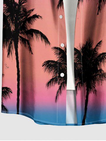 Plus Size Coconut Tree Bird Ombre Print Buttons Pocket Hawaii Shirt For Men - Pink - 6xl