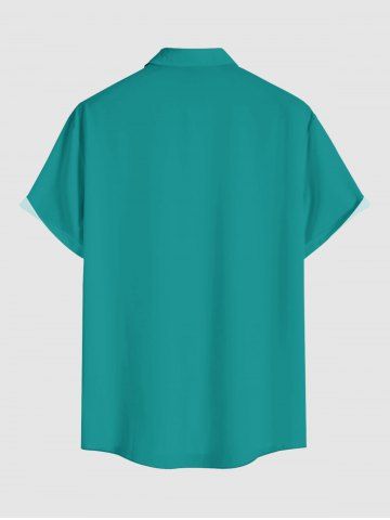 Plus Size Coconut Tree Bird Ombre Print Buttons Pocket Hawaii Shirt For Men - Emerald - L