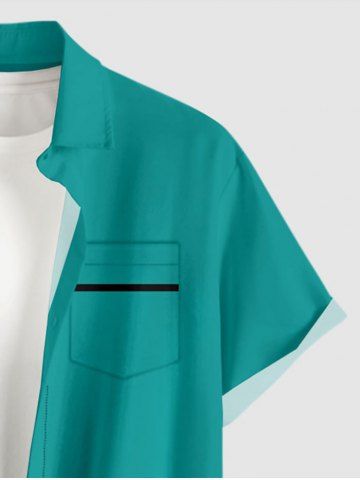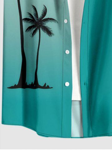 Plus Size Coconut Tree Bird Ombre Print Buttons Pocket Hawaii Shirt For Men - Emerald - Xl