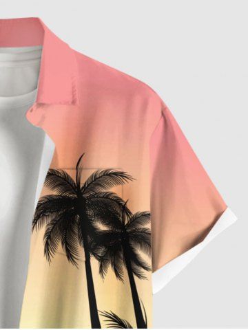 Short Sleeves Shirts > Plus Size Coconut Tree Bird Ombre Print Hawaii Buttons Pocket Shirt For Men