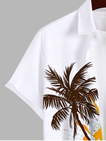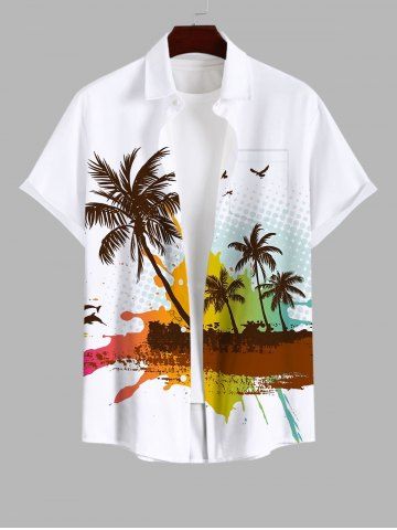 Plus Size Coconut Tree Bird Paint Splatter Print Buttons Pocket Hawaii Shirt For Men - White - 4xl