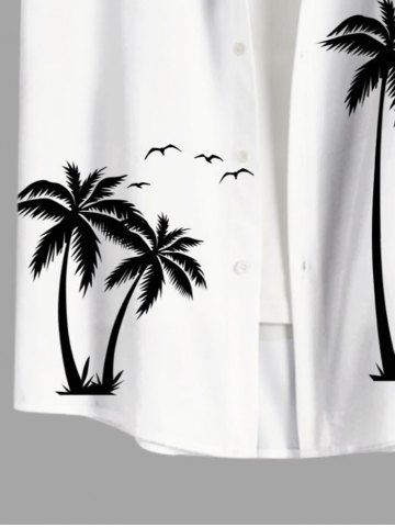 Plus Size Coconut Tree Bird Print Buttons Pocket Hawaii Shirt For Men - White - L