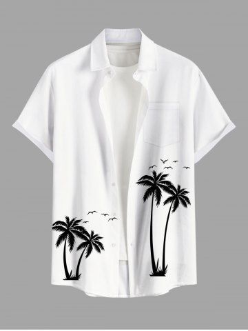 Plus Size Coconut Tree Bird Print Buttons Pocket Hawaii Shirt For Men - White - Xl