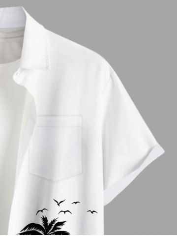 Plus Size Coconut Tree Bird Print Buttons Pocket Hawaii Shirt For Men - White - 3xl