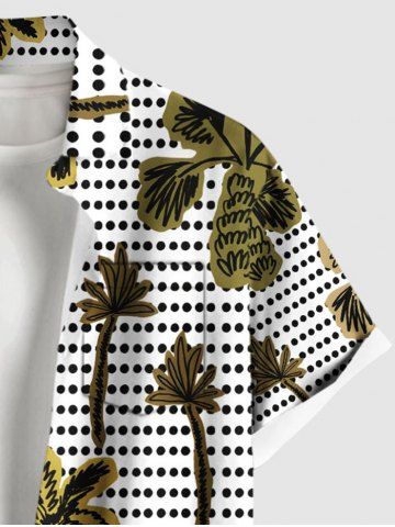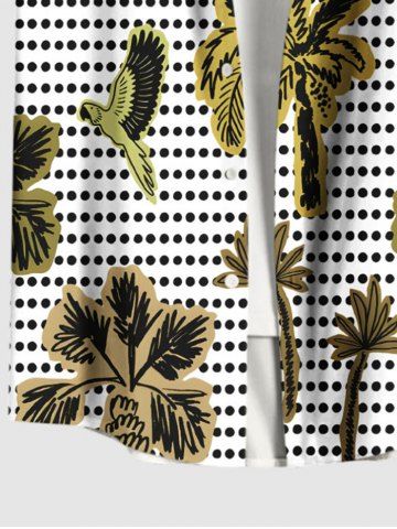 Plus Size Coconut Tree Birds Pin Dot Print Hawaii Button Pocket Shirt For Men - White - M