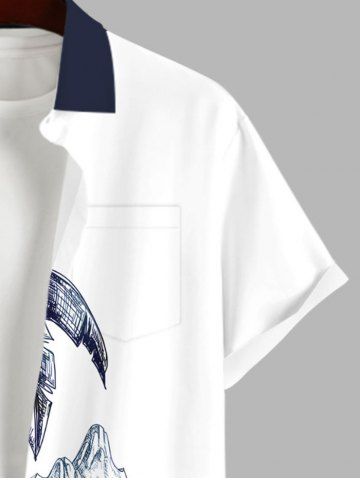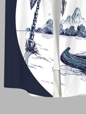 Plus Size Coconut Tree Boat Mountain Sea Colorblock Print Buttons Pocket Hawaii Shirt For Men - Multi-a - 3xl