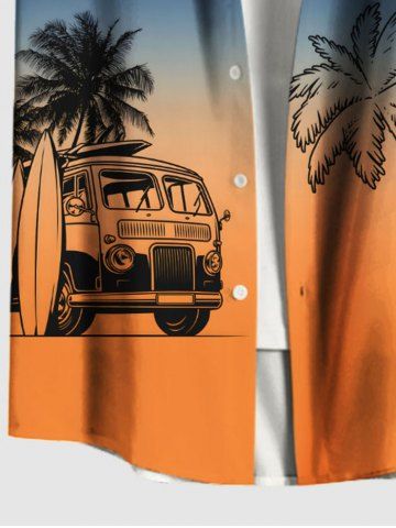 Short Sleeves Shirts > Plus Size Coconut Tree Bus Ombre Colorblock Print Buttons Pocket Hawaii Shirt For Men