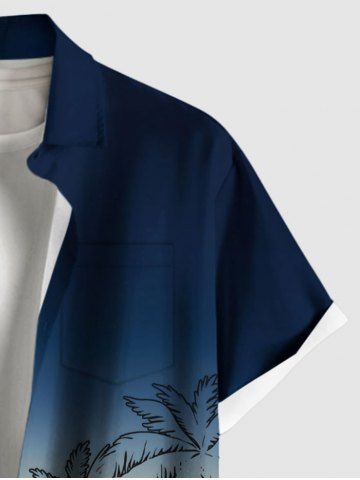 Plus Size Coconut Tree Bus Ombre Colorblock Print Buttons Pocket Hawaii Shirt For Men - Deep Blue - 5xl