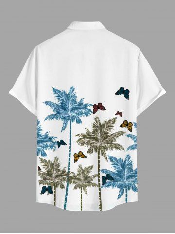 Plus Size Coconut Tree Butterfly Print Hawaii Button Pocket Shirt For Men - White - L