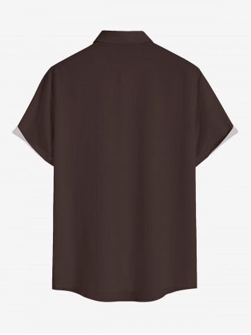 Plus Size Coconut Tree Cat Seascape Letter Print Hawaii Button Pocket Shirt For Men - Brown - 6xl