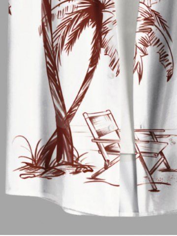 Plus Size Coconut Tree Chair Print Buttons Pocket Hawaii Shirt For Men - White - M