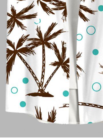 Plus Size Coconut Tree Circle Print Hawaii Button Pocket Shirt For Men - White - Xl