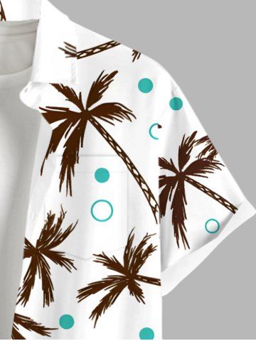 Plus Size Coconut Tree Circle Print Hawaii Button Pocket Shirt For Men - White - 3xl