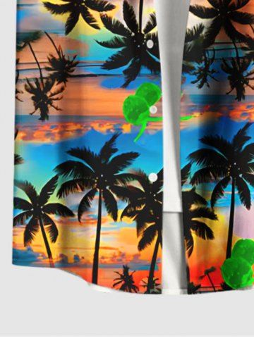 Plus Size Coconut Tree Cloud Colorful Sky Print Buttons Pocket Hawaii Shirt For Men - Orange - S