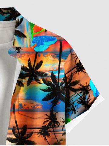 Plus Size Coconut Tree Cloud Colorful Sky Print Buttons Pocket Hawaii Shirt For Men - Orange - Xl