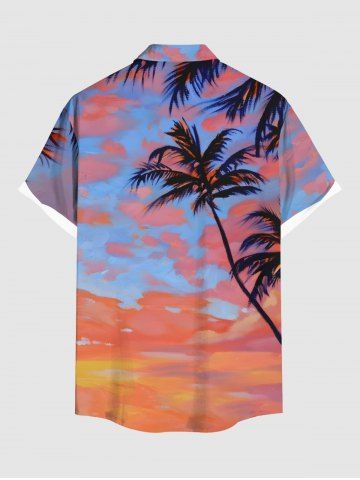 Short Sleeves Shirts > Plus Size Coconut Tree Cloud Dusk Print Hawaii Buttons Pocket Shirt For Men