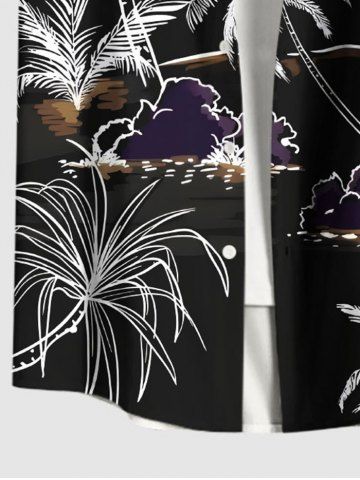 Plus Size Coconut Tree Cloud Moon Bird Print Buttons Pocket Hawaii Shirt For Men - Black - L