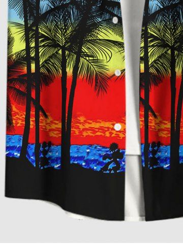 Short Sleeves Shirts > Hawaii Plus Size Coconut Tree Cloud Sea Colorblock Print Buttons Pocket Shirt For Men