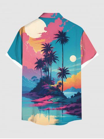 Short Sleeves Shirts > Plus Size Coconut Tree Cloud Sea Mountain Moon Print Buttons Pocket Hawaii Shirt For Men