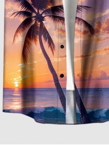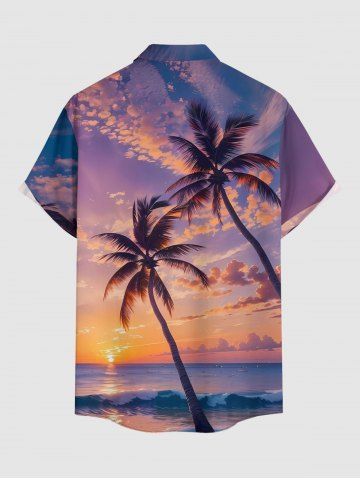Short Sleeves Shirts > Plus Size Coconut Tree Cloud Seascape Print Buttons Pocket Hawaii Shirt For Men