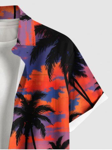 Short Sleeves Shirts > Plus Size Coconut Tree Cloud Sun Seascape Print Buttons Pocket Hawaii Shirt For Men