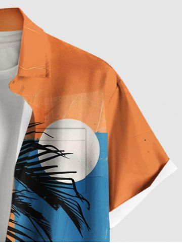 Short Sleeves Shirts > Plus Size Coconut Tree Colorblock Moon Print Hawaii Button Pocket Shirt For Men
