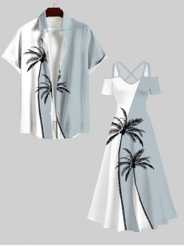 Coconut Tree Colorblock Print Plus Size Matching Hawaii Beach Outfit For Couples