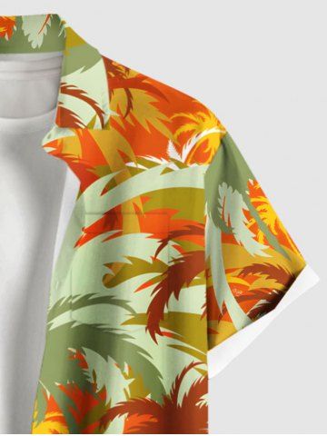 Plus Size Coconut Tree Colorblock Print Buttons Pocket Hawaii Shirt For Men - Orange - M