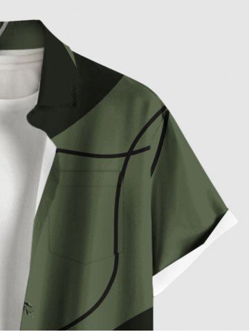 Plus Size Coconut Tree Colorblock Print Buttons Pocket Hawaii Shirt For Men - Green - 3xl