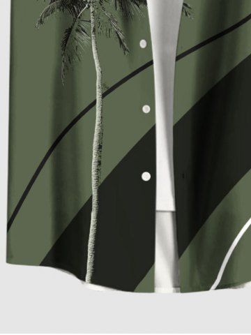 Plus Size Coconut Tree Colorblock Print Buttons Pocket Hawaii Shirt For Men - Green - 6xl