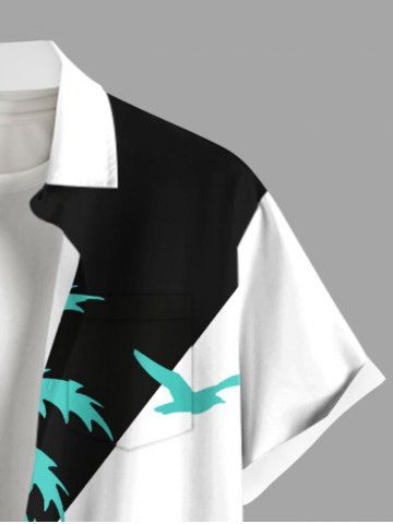 Plus Size Coconut Tree Colorblock Print Buttons Pocket Hawaii Shirt For Men - Black - 6xl