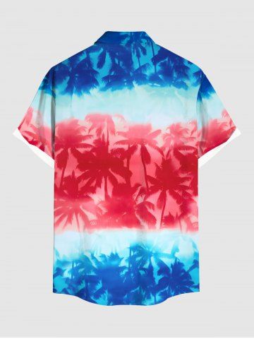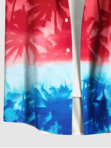 Short Sleeves Shirts > Plus Size Coconut Tree Colorblock Print Buttons Pocket Hawaii Shirt For Men