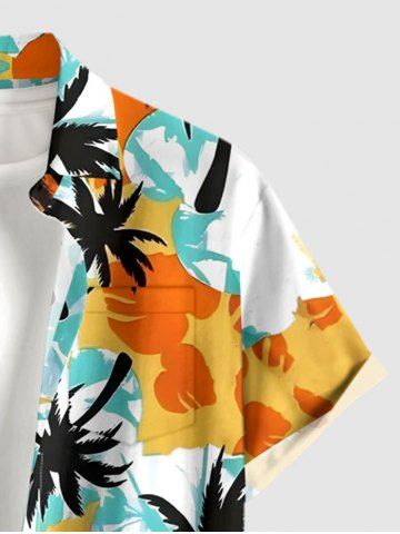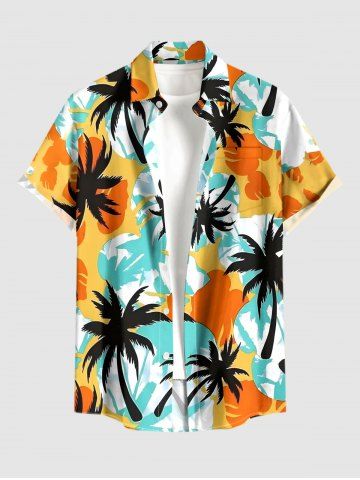 Short Sleeves Shirts > Plus Size Coconut Tree Colorblock Print Buttons Pocket Hawaii Shirt For Men